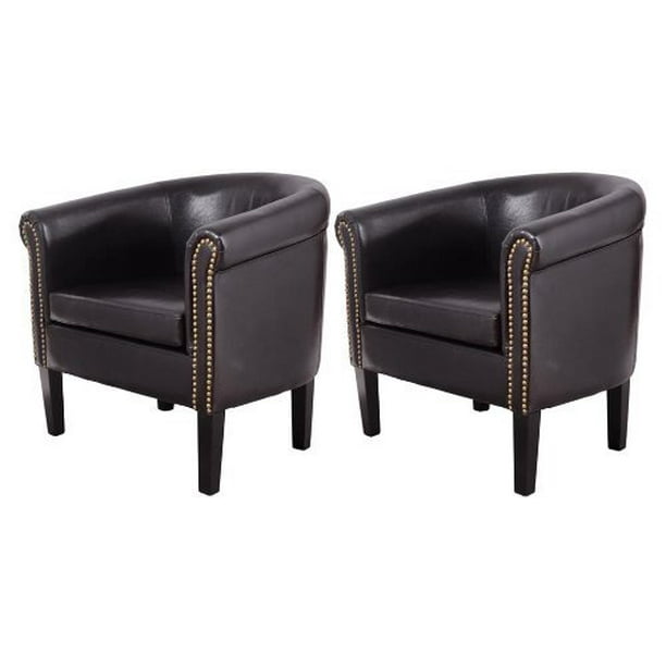 Celipu pu leather accent single barrel chair living room with nailhead. Yaheetech barrel chair faux leather club chair accent arm chair modern style tub chair. Alibaba.com offers 884 faux leather tub chair products. Shop for leather chairs at crate and barrel. Amazonbasics faux leather barrel acce. Sauder boulevard cafe faux leather upholstered accent chair in camel and blackby sauder(2). You'll receive email and feed alerts when new items arrive. From the high arms to the rounded back, not an inch is left without cushion or buttery leather. This club chair brings together stylish good looks and extreme comfort. Charcoal faux leather swivel barrel chair with orange stitching. Barrel shaped with a raised back, this round seat armchair is finished with nailhead trim along the seat base and back exterior. Upholstered in black or red supple, faux leather. Grafton madison faux leather swivel barrel chair, one size, grey.